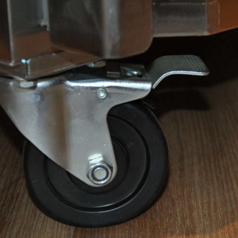 Das Gehäuse besteht aus hochwertigem Edelstahl 18/8, während der Innenraum aus pflegeleichtem Aluminium gefertigt ist. Drei GN 2/1 Roste bieten maximale Flexibilität bei der Lagerung von Lebensmitteln. Der Kühlschrank ist abschließbar, fahrbar und dank automatischer Abtauung besonders wartungsarm.